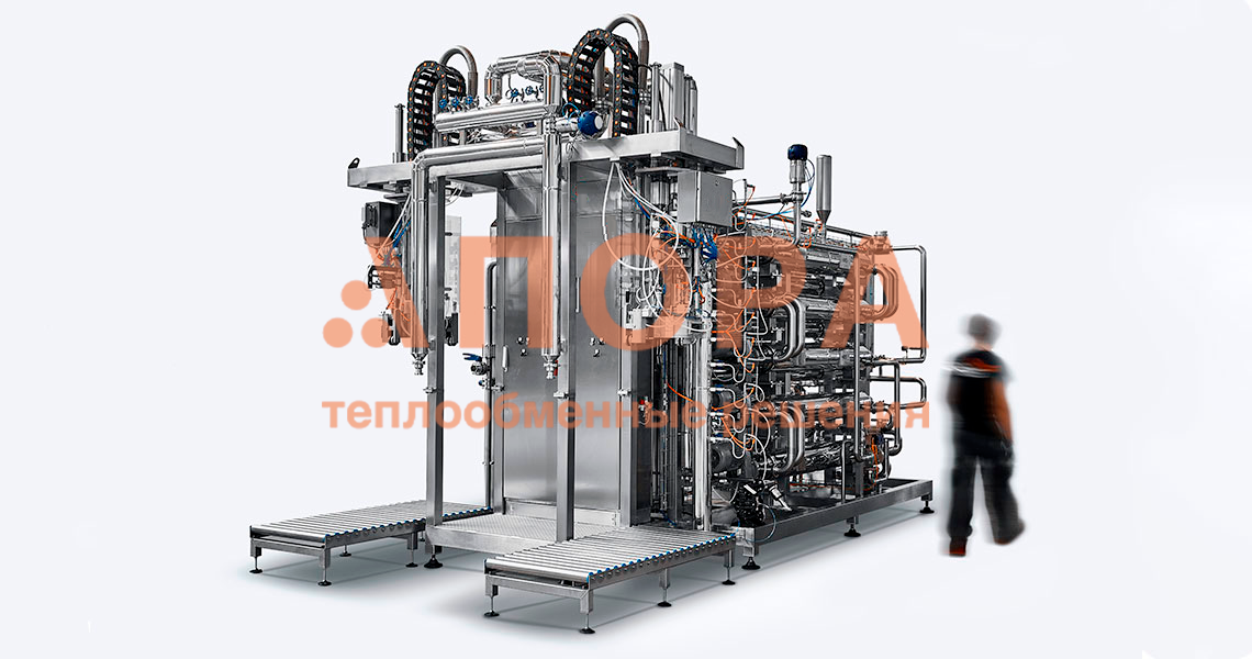Асептический стерилизатор, разработанный компанией АПОРА , позволяет оптимально настраивать каждый этап процесса. Оптимизируя процесс стерилизации и пастеризации продукта с целью уменьшения нежелательных побочных эффектов, что приводит к весьма эффективному процессу. Конструкции асептических блоков могут включать в себя: накопительную емкость, насосы, деаэратор, секцию рекуперации, теплообменники, асептические емкости, клапаны, измерительные приборы и другое оборудование.