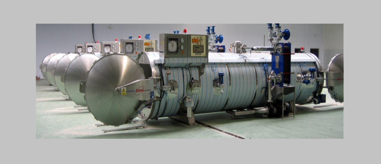 Компания EZMA Технологии пищевой промышленности разрабатывает и изготавливает горизонтальные промышленные автоклавы для работы с различными программами стерилизации, которые адаптируются к продукту, находящемуся внутри, подвергая его управляемым автоматическим циклам на различных этапах переменной продолжительности, тем самым применяя термическую обработку при регулируемом давлении.