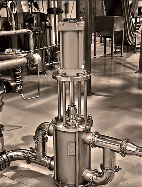 Представляет собой горизонтальную версию стандартного насоса для жидких продуктов включающих крупные частицы. Сам насос располагается горизонтально, а патрубки для подачи продукта – вертикально. Стандартный клапан заменён на шаровый, также возможно дооборудовать конусообразной воронкой для загрузки продукта.
