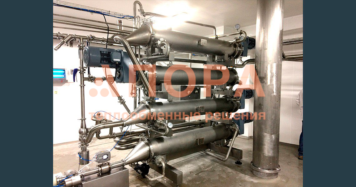Вращающийся скребковый теплообменник АПОРА R Серии разработан для наиболее сложных процессов теплопередачи, например где используется высоковязкий продукт и одновременно происходит быстрое загрязнение теплообменной поверхности.